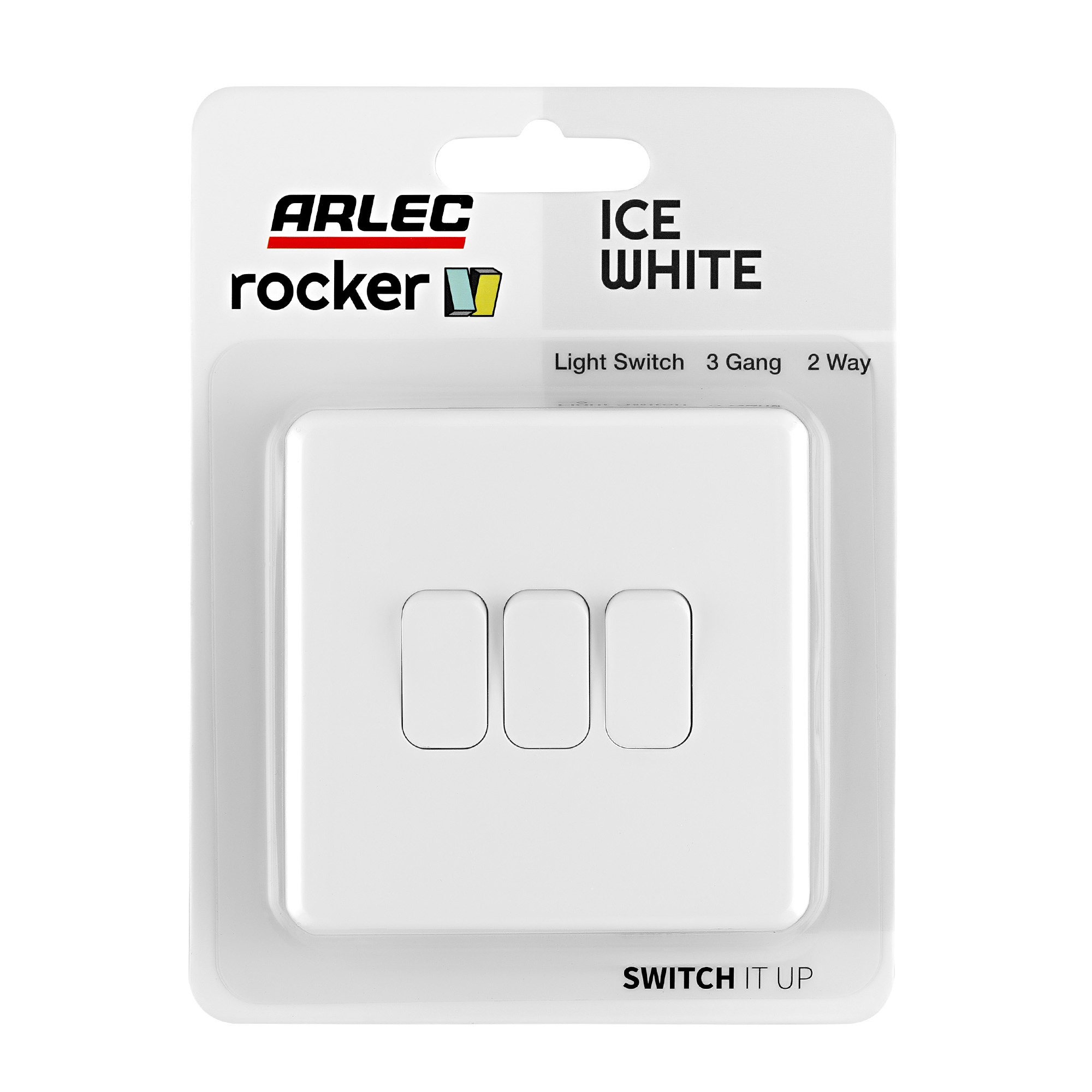 This product is a 10amp 3 gang 2 way switch. Complete the look with other Rocker switches and sockets available in ice white.