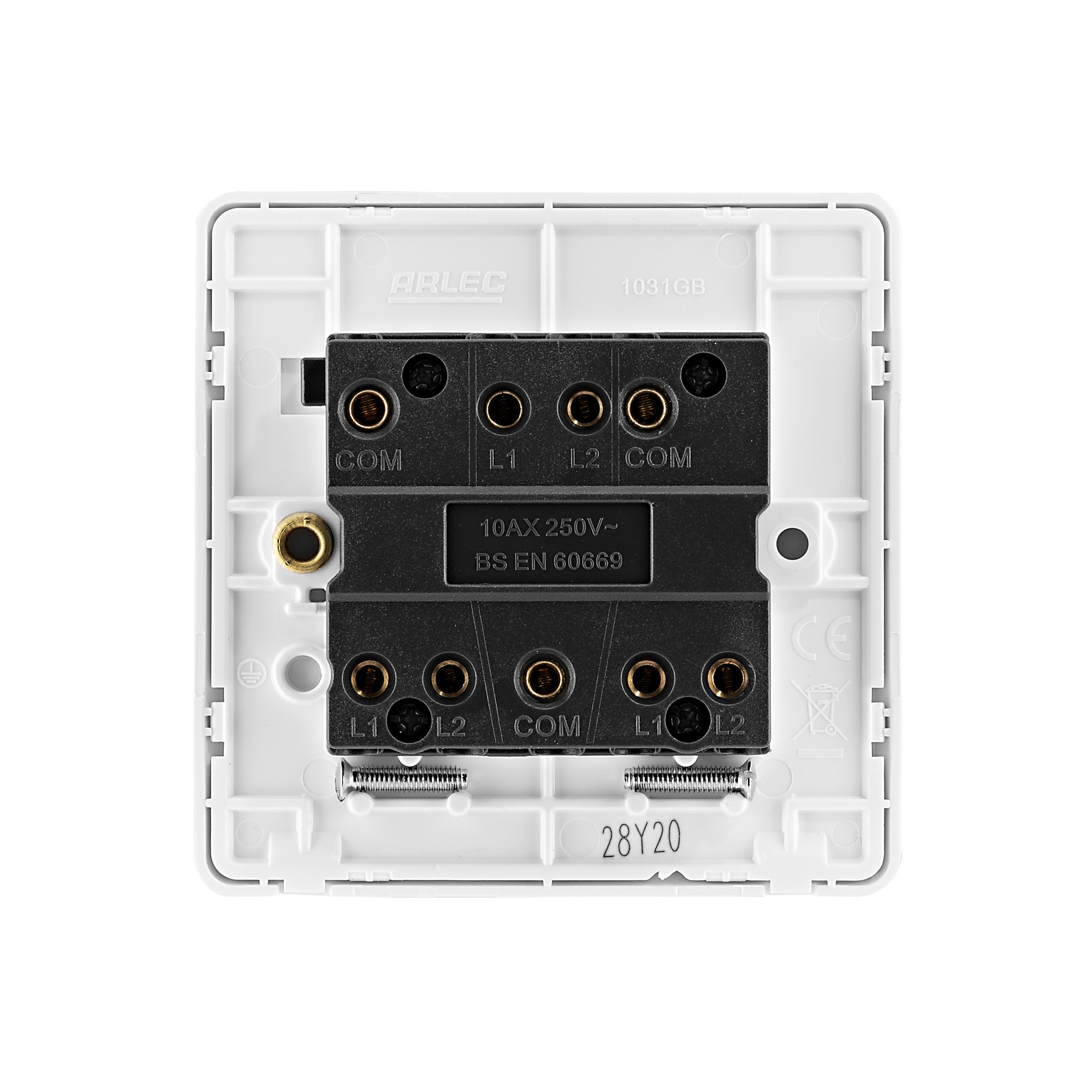 Rocker ice white light switch is a fresh update of a classic and will switch up your style. The front plate is screwless and removable which is handy when you come to decorate. Terminals are colour coded with captive screws to aid installation.