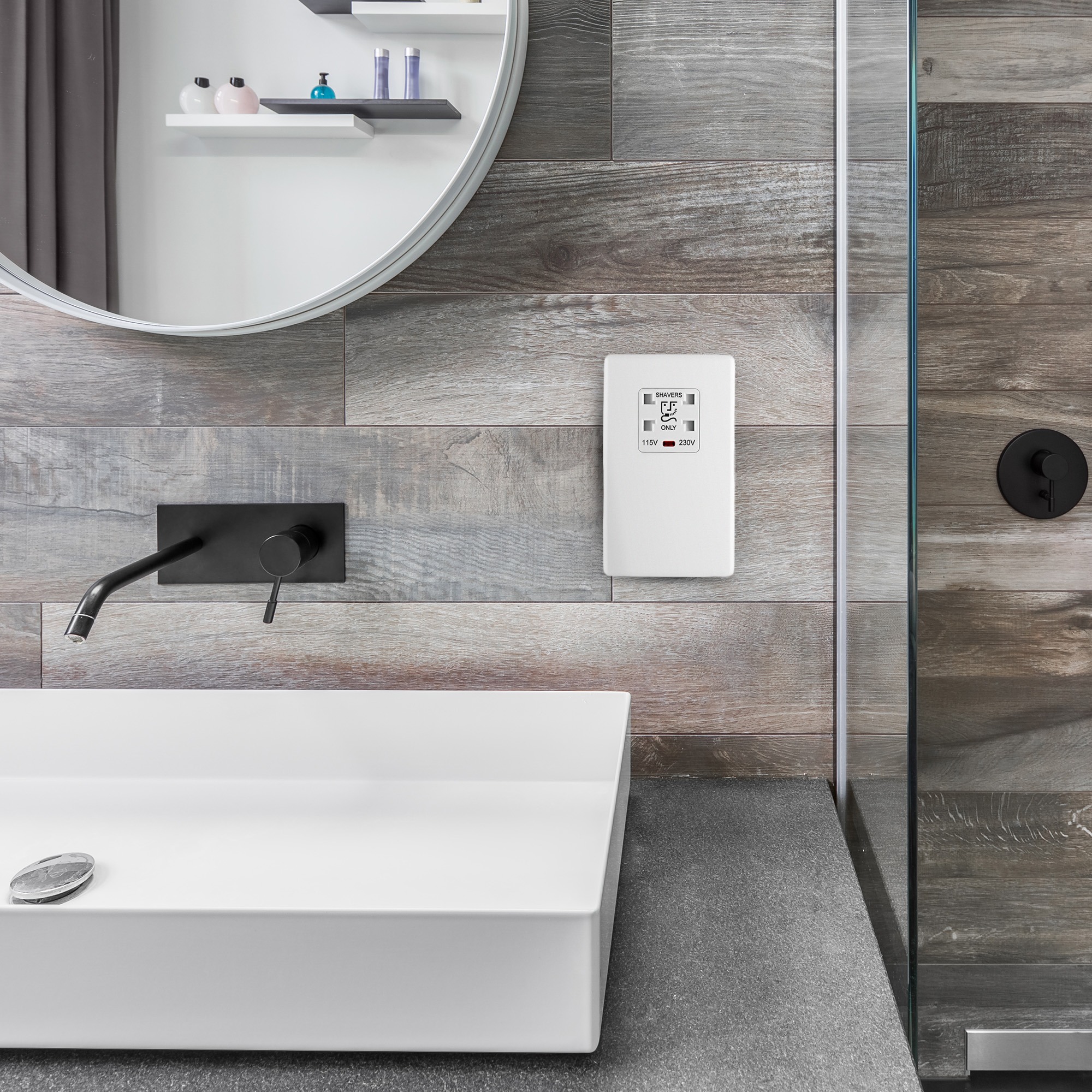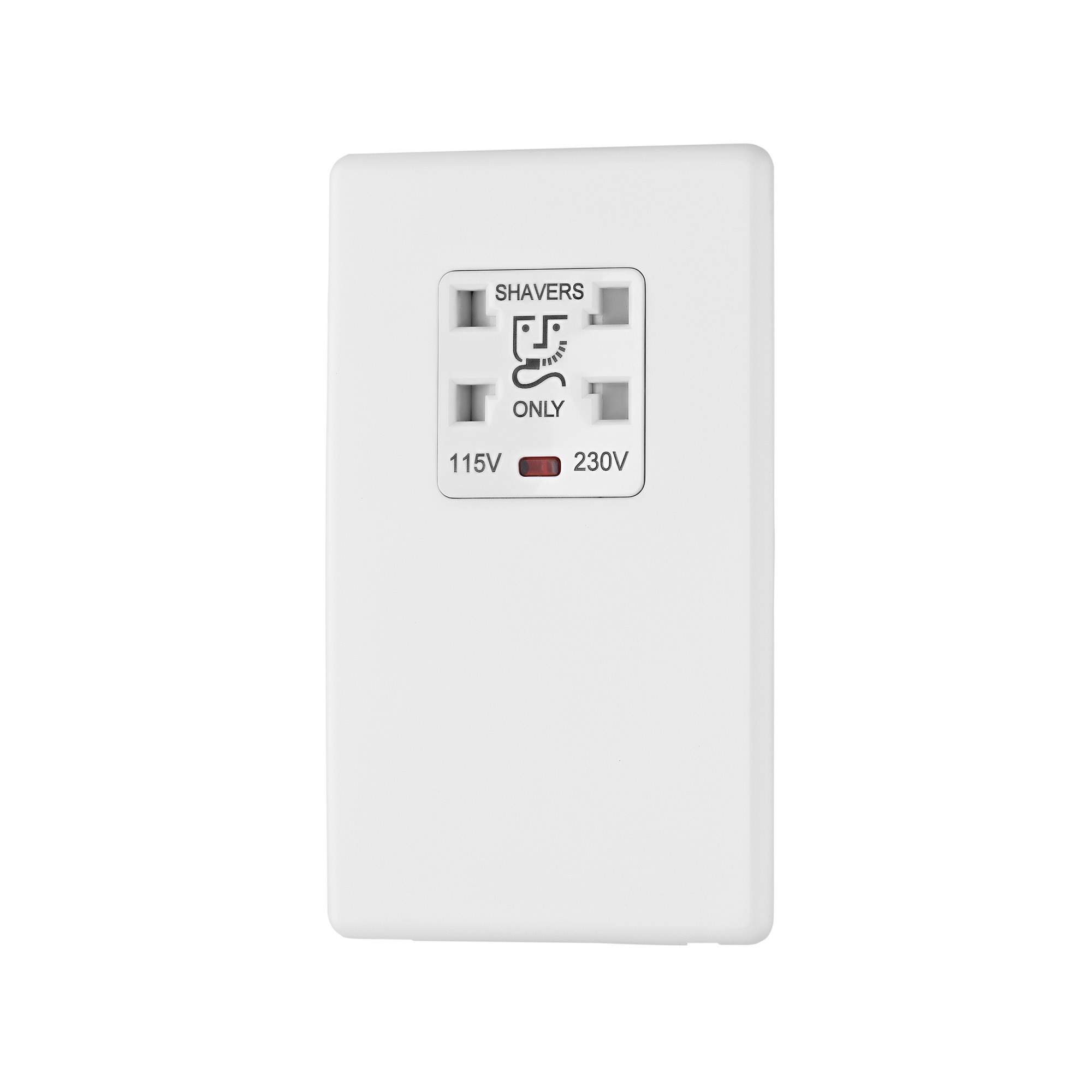 This product is a 13amp dual voltage 115/230v shaver socket. Complete the look with other Rocker switches and sockets available in ice white.
