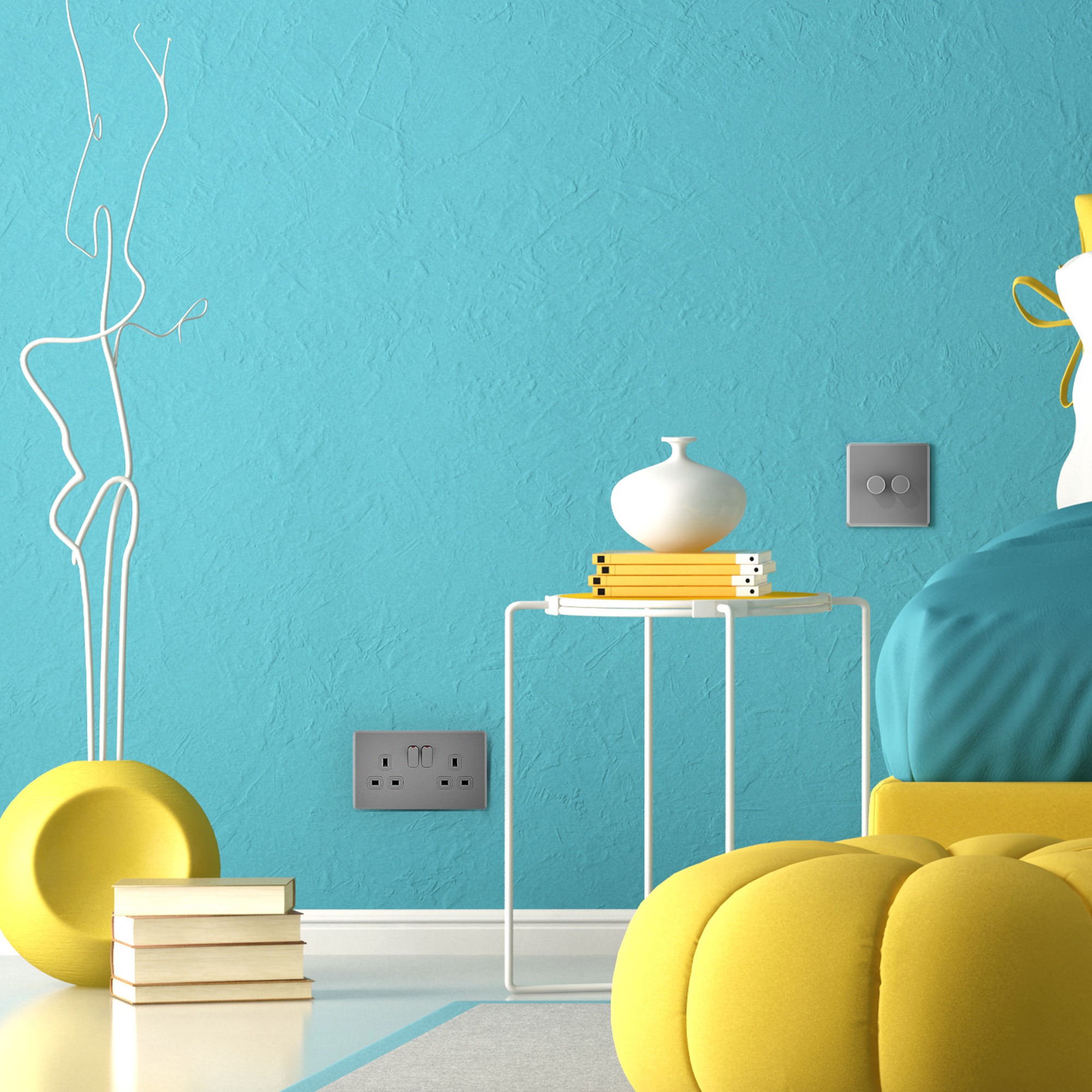 Rocker stone grey dimmer switch is cool and understated and will switch up your style. The front plate is screwless and removable which is handy when you come to decorate. Terminals are colour coded with captive screws to aid installation.