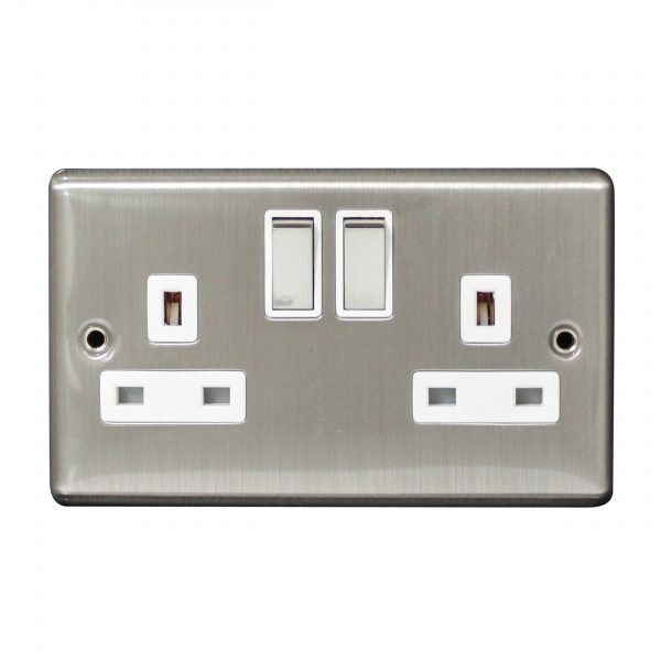 Switched Socket 2 Gang SP 13A Screwed Brushed Stainless Steel